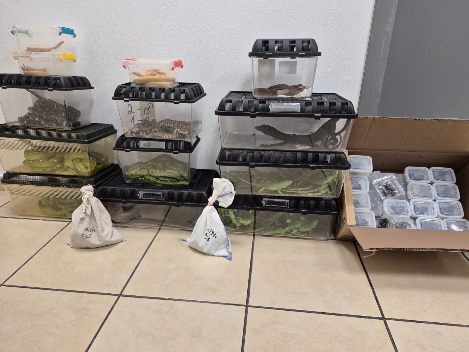 דחס את כולם במזוודה אחת: כך נמנע ניסיון הברחה של כ-140 זוחלים ועקרבים בנתב”ג, נחש אחד כבר מצא את מותו