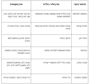 1. התאמה לסוגי שימושים שונים