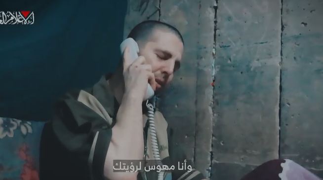 בסרטון, שעבר עריכה בידי חמאס, נראה אלקנה אוחז בטלפון ופונה לאשתו רבקה: