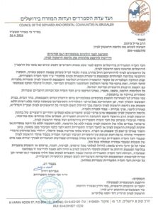 מהוועד העדה הספרדית נמסר לרב במכתב שנשלח לרב הבוקר "ועד העדה הספרדית בירושלים הוקם לפני שבע מאות וחמישים ותשע שנים עם בואו של הרמב"ן לירושלמים ובראשו ניצב הראשון לציון