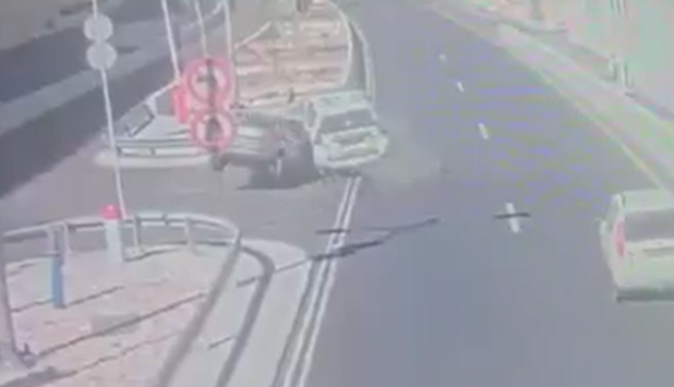 קשה לצפייה: ניידת מג״ב מבצעת פרסה במקום אסור –  וגורמת לתאונה קשה