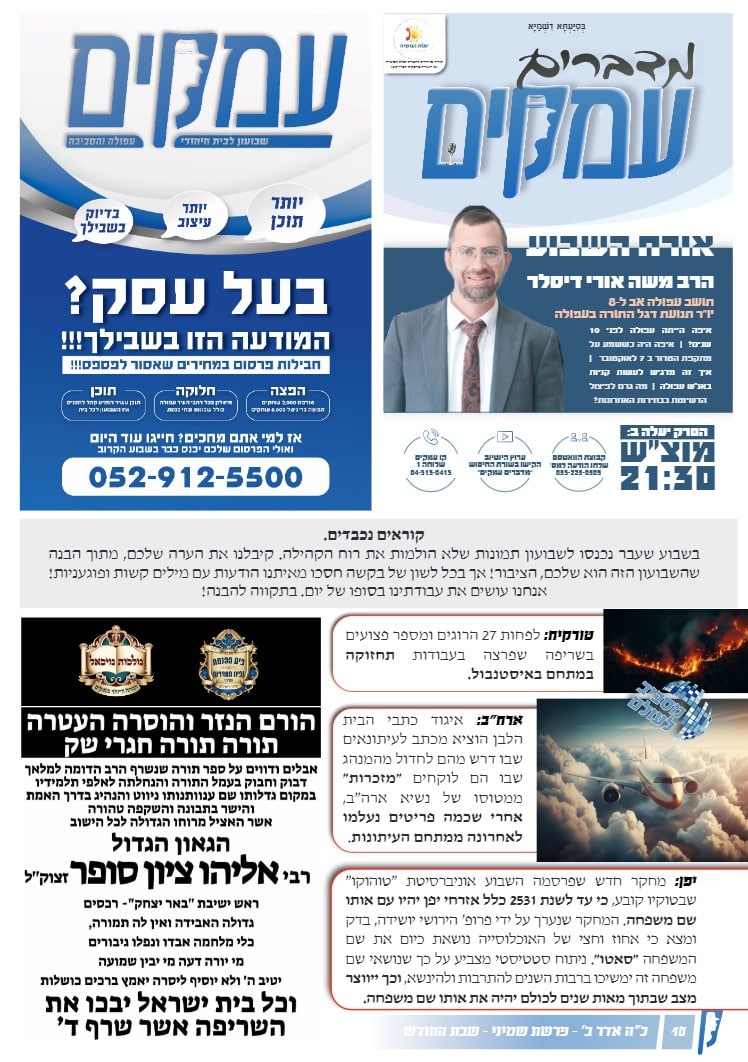 שבועון מספר 5 – פרשת שמיני