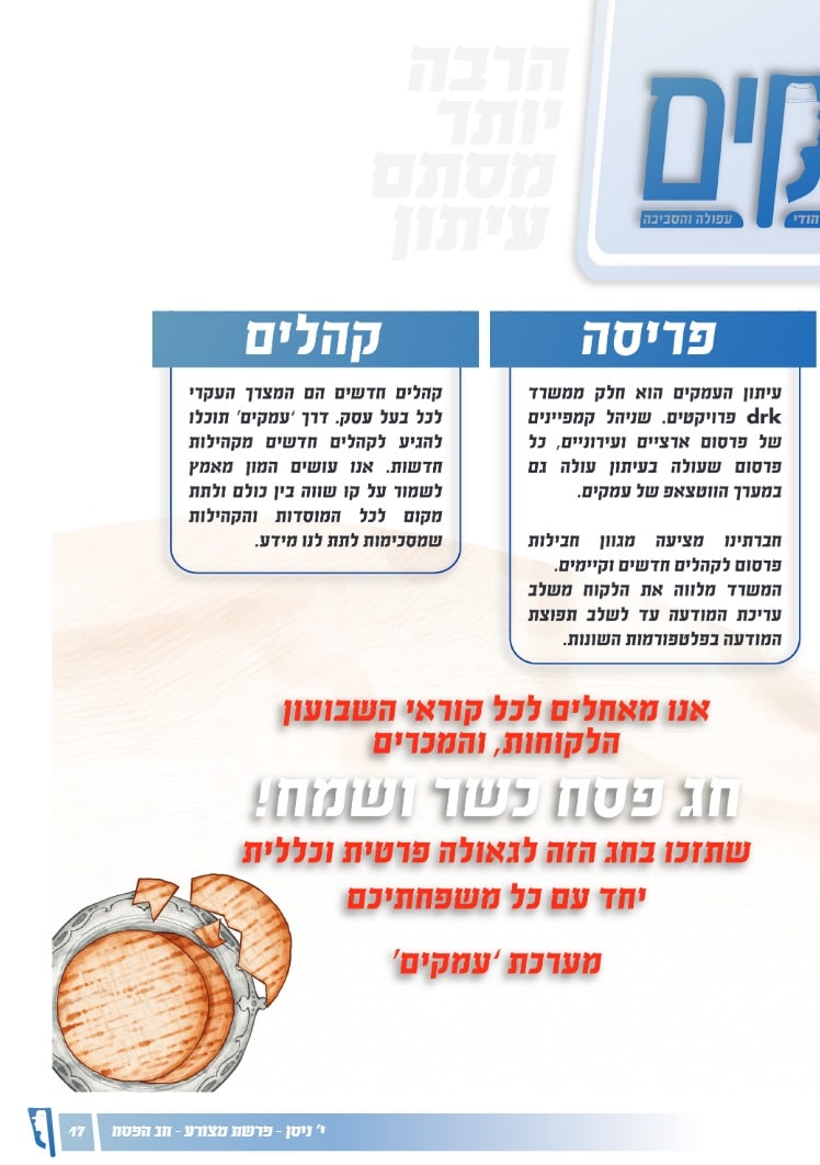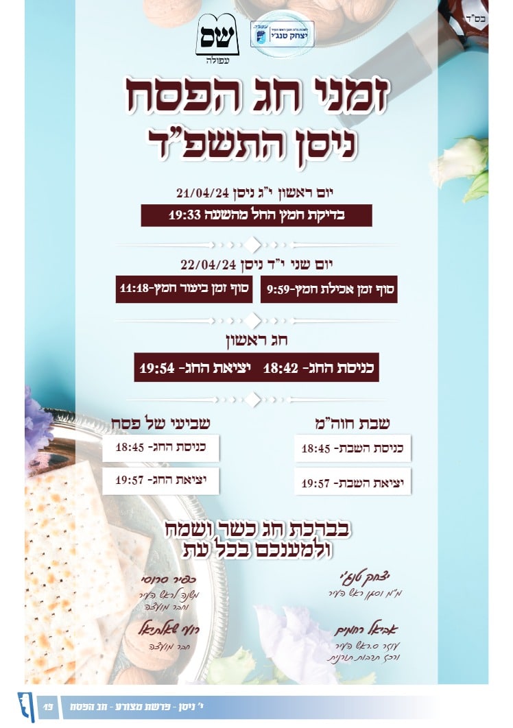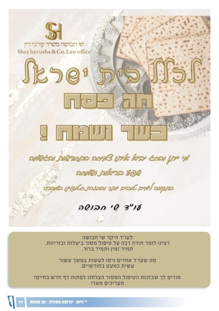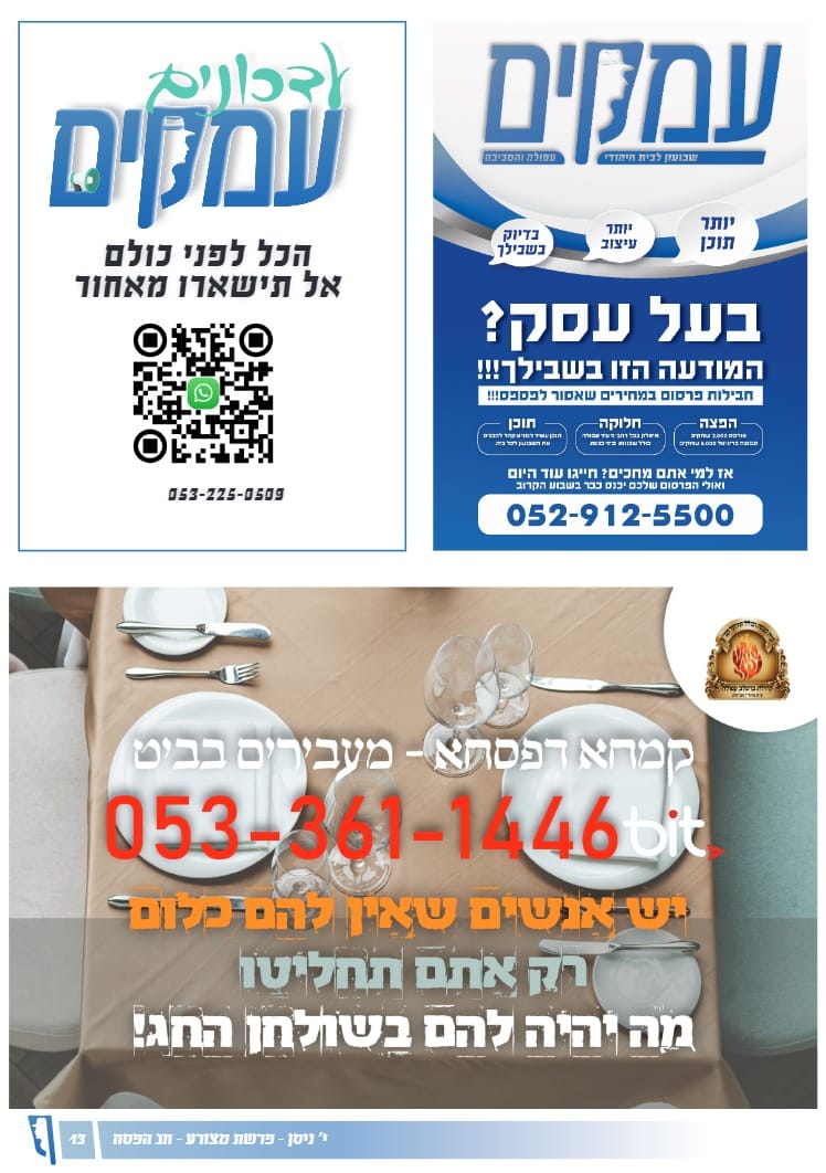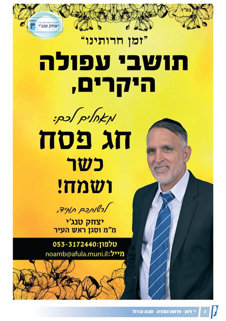 שבועון עמקים מספר 7 – מצורע – שבת הגדול