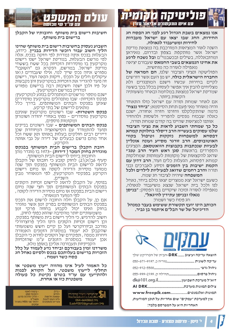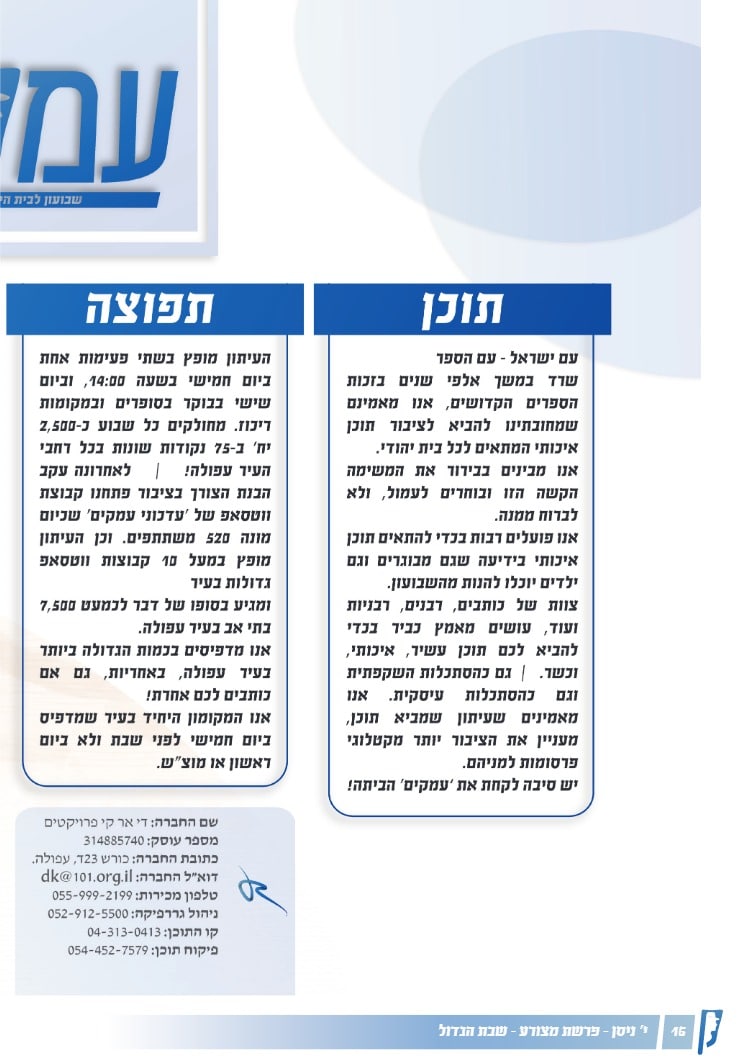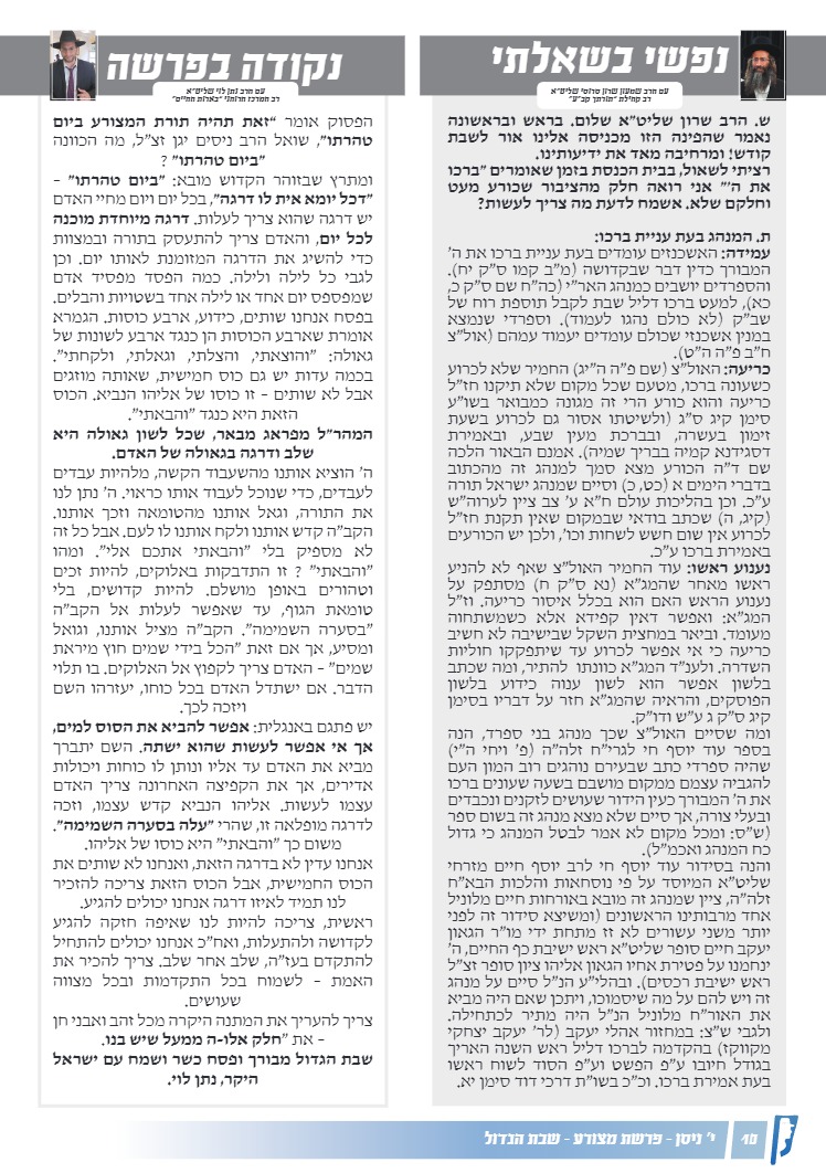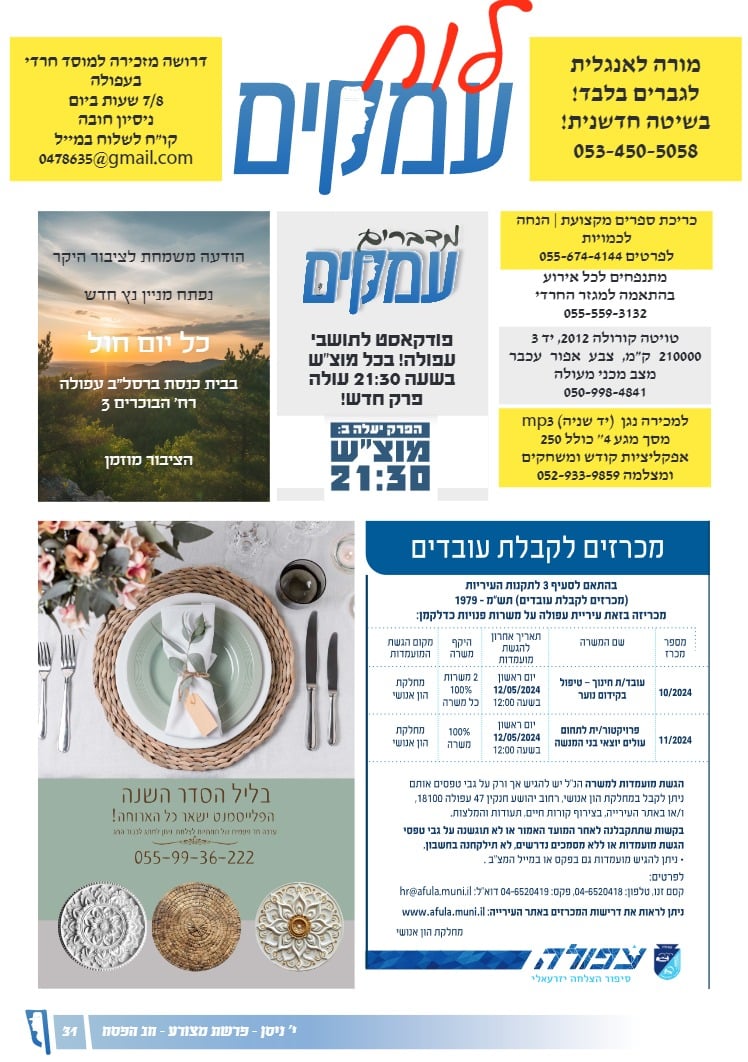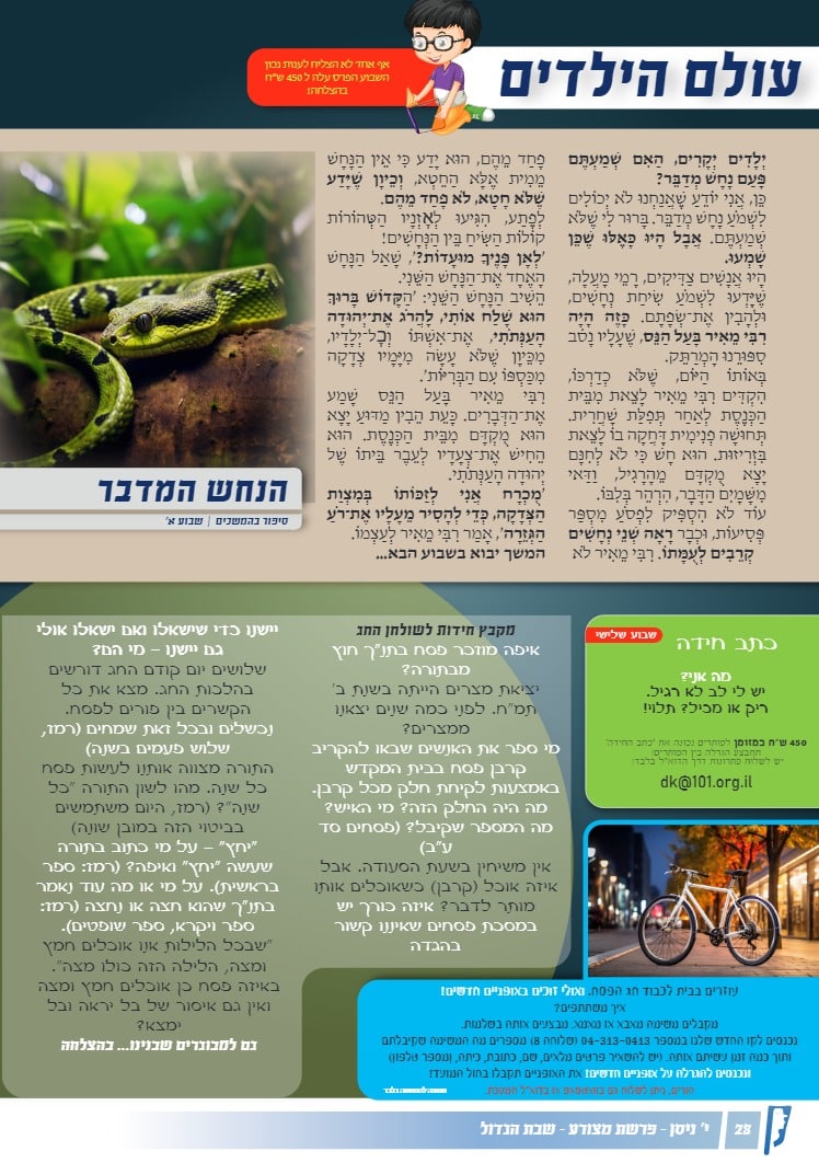 שבועון עמקים מספר 7 – מצורע – שבת הגדול